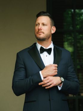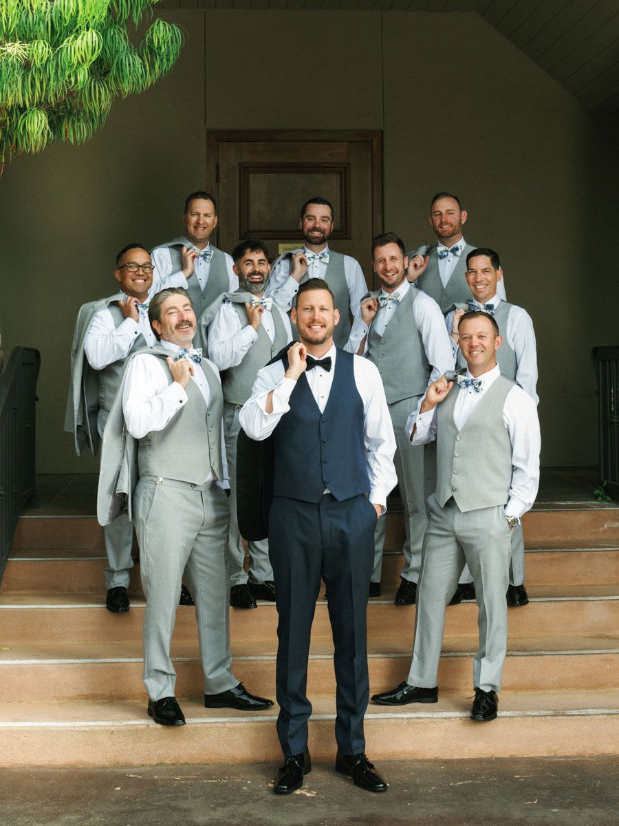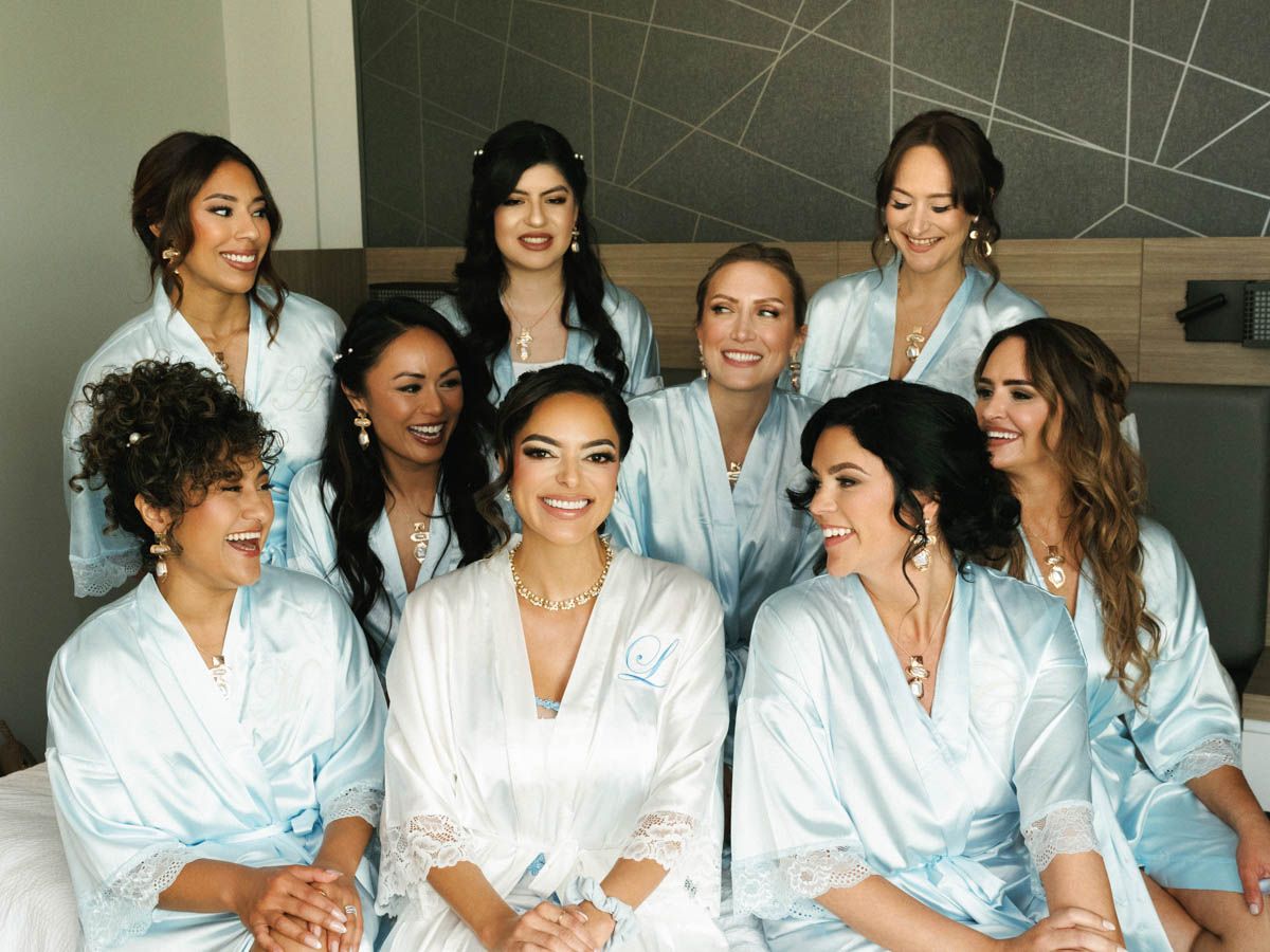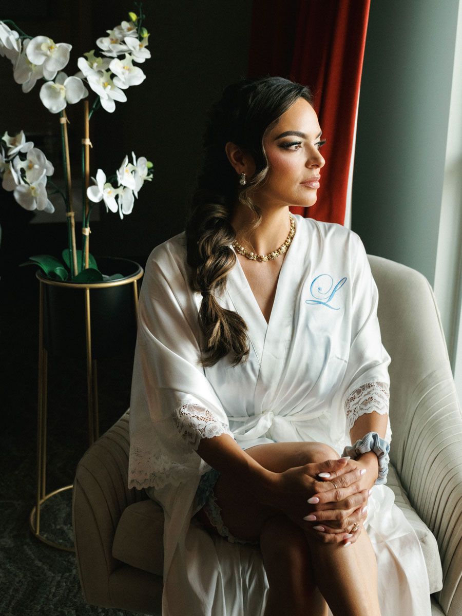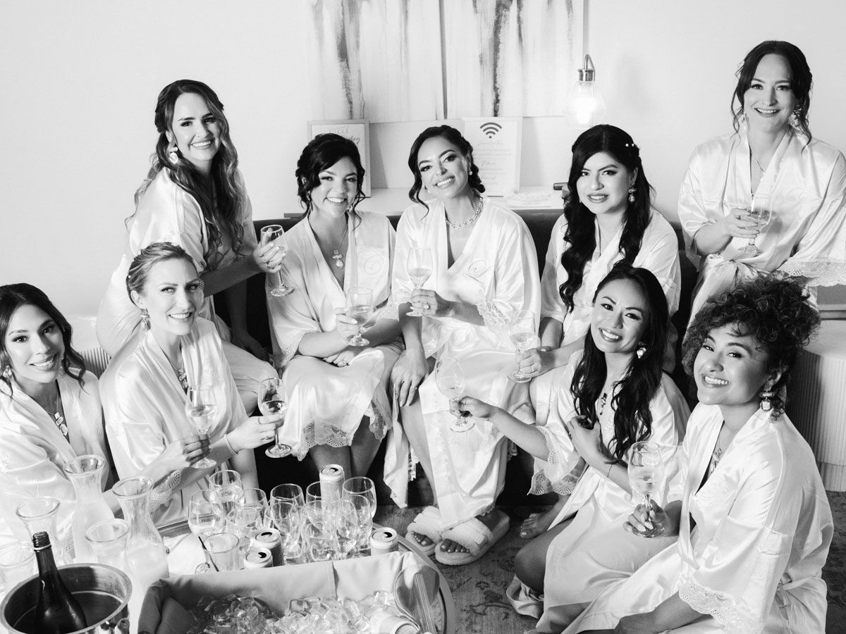 The day began with laughter and champagne in the bridal suite, surrounded by friends in soft blue robes, and continued with a stunning first look that captured the anticipation and tenderness between them. Every detail — from the refined florals to the beautifully tailored outfits — was thoughtfully chosen and effortlessly photographed in natural light.