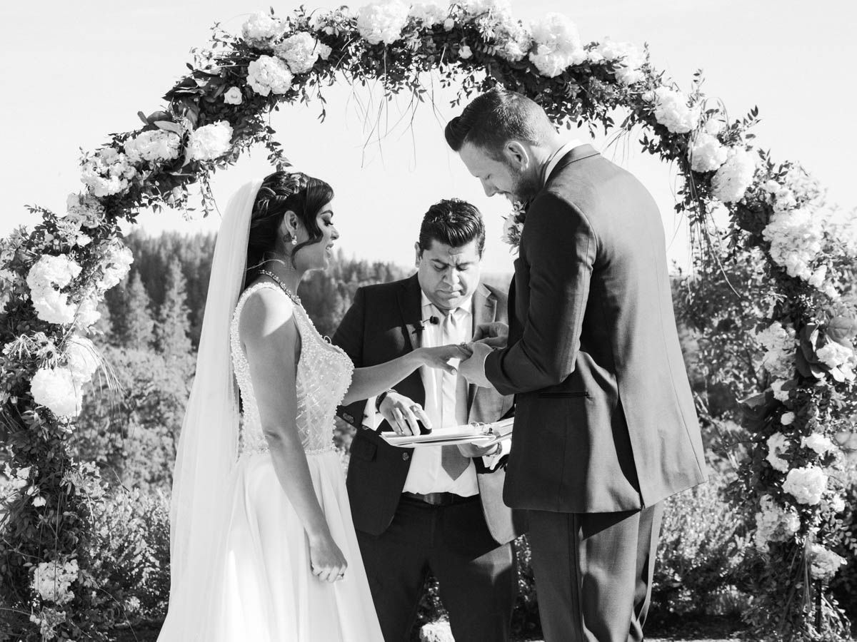 Their ceremony took place under open skies, with a view of the lush green hills and the support of their closest loved ones. Later, the celebration moved indoors where they cut a gorgeous cake and danced the night away in a beautifully decorated reception hall.