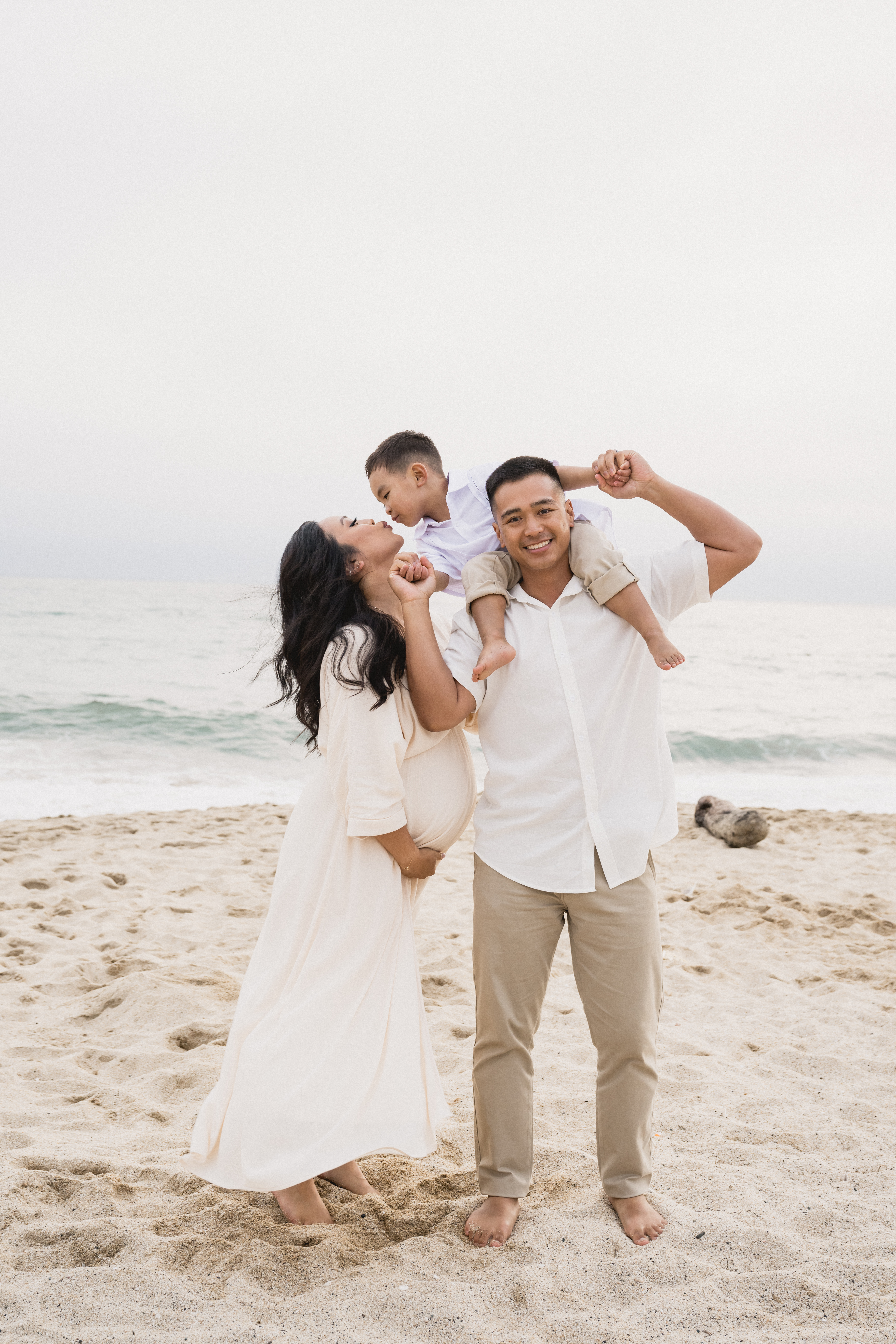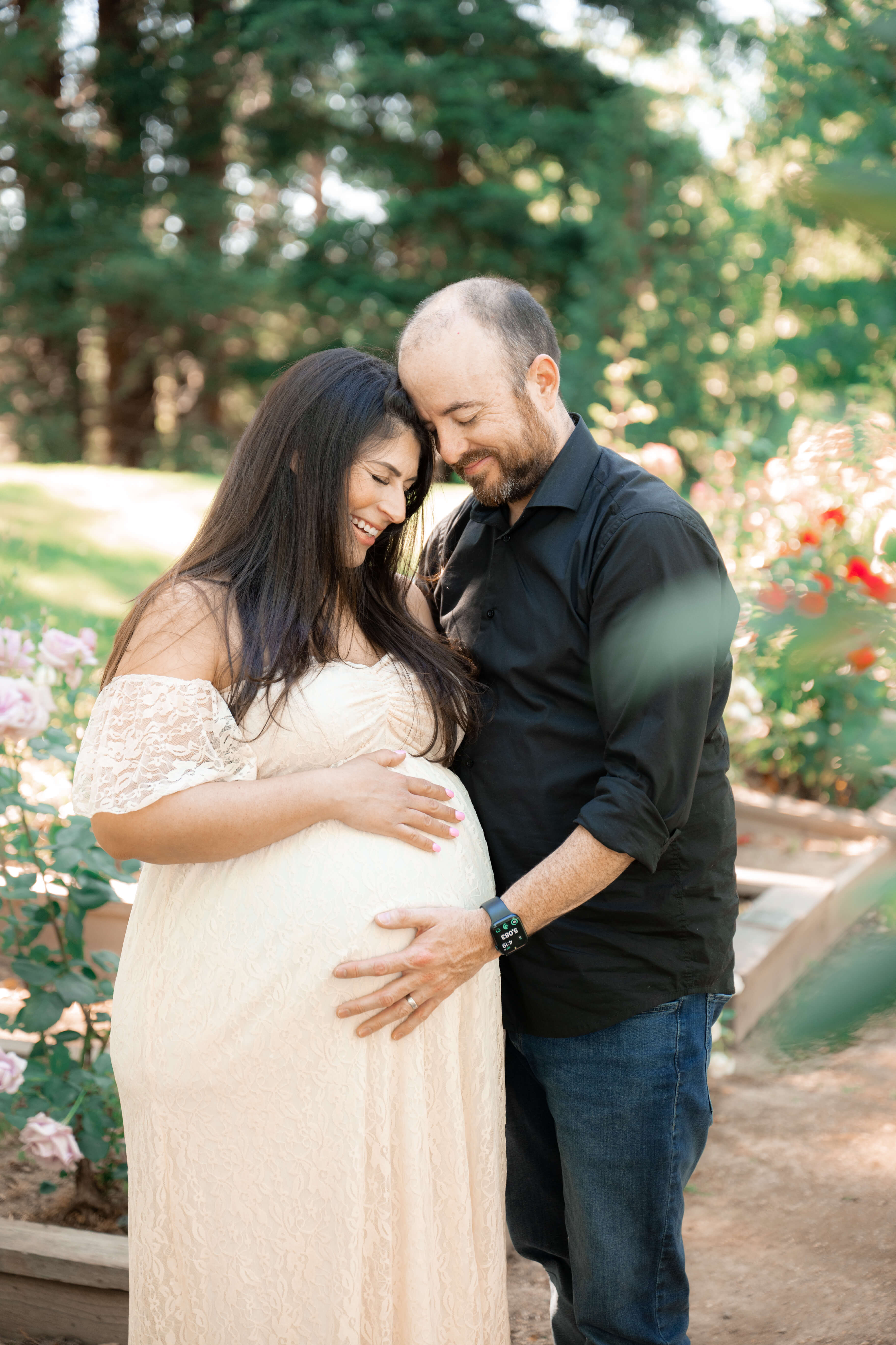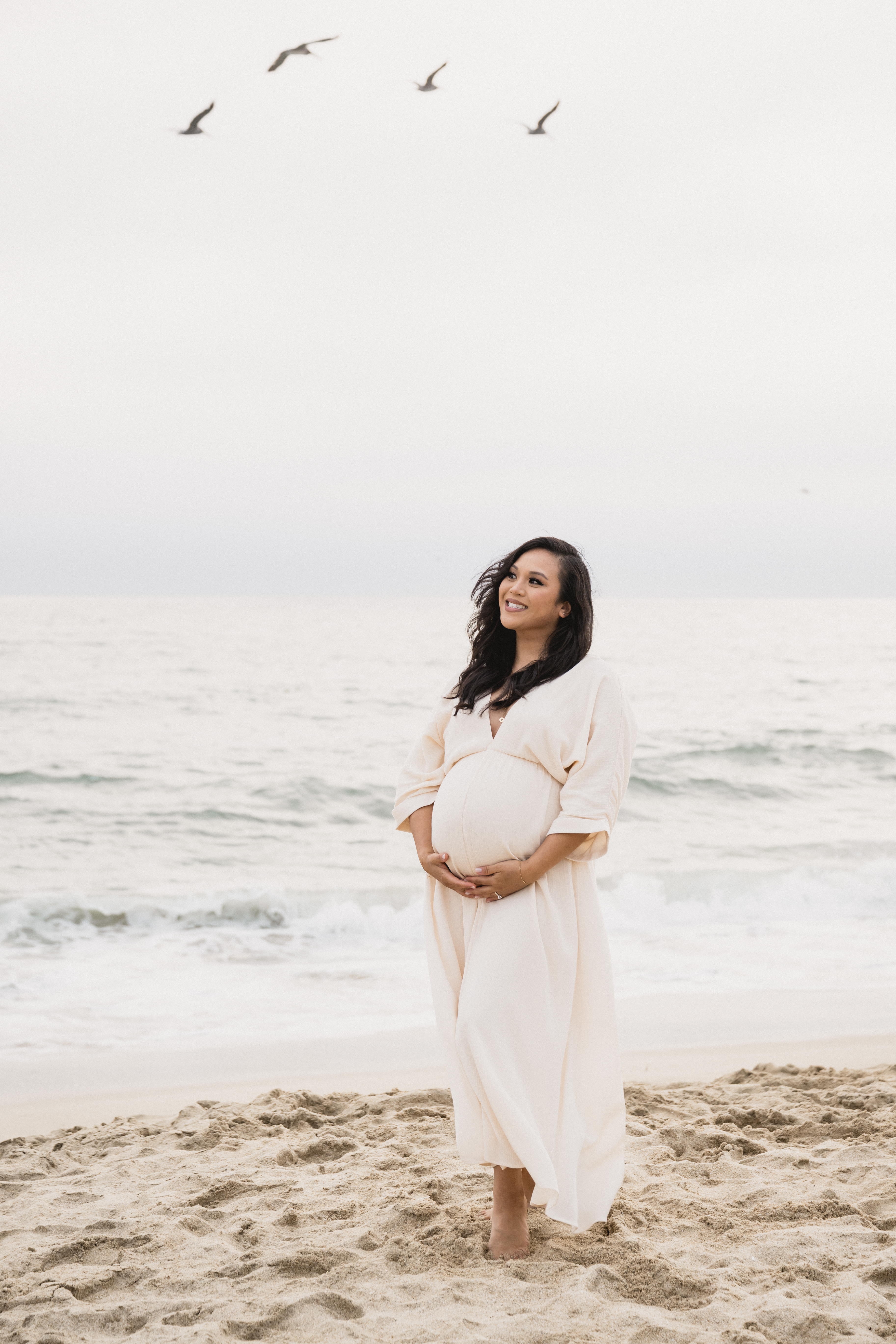 Choose outfits that make you feel comfortable and beautiful. Flowing dresses, fitted tops that highlight your bump, or even casual outfits can work perfectly. I also provide wardrobe guidance during our pre-session consultation.